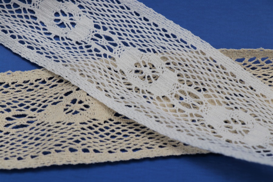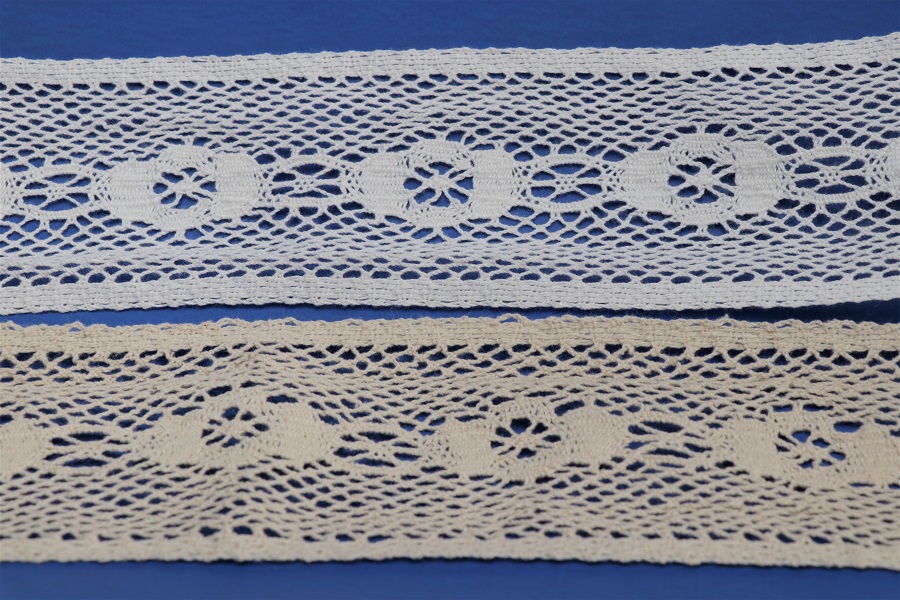 Conocido también como encaje de bolillo , encontraras variedad de dibujos fabricado con hilo 100% Algodón en hilos gruesos o delgados encontraras una enorme selección de dibujos , blanco y hueso .ideal para adornar blusas , faldas , pantalones , así como artículos de decoración.